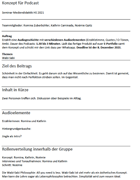 - Schickt mir den Podcast als mp3 Datei per Whatsapp. Ein File pro Gruppe reicht. Deadline: 8. Dezember 2021.